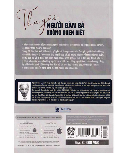 Ông gặp chuyện gì nói chuyện đó, không sắp đặt trước, lan man ý như trong một cuộc đàm thoại. Triết lý của ông là một triết lý lạc quan, khoan hòa, thực tế mà chân chính. Giọng của ông nghiêm trang, thanh nhã mà thân mật, dí dỏm không ra vẻ dạy đời. Ông già tâm lý, giàu kinh nghiệm sẽ giúp người đọc thấu hiểu. Xem thêm về tác giả và cuốn sách này tại: https://bizbooks.vn/san-pham/thu-gui-nguoi-dan-ba-khong-quen-biet/ Bạn đang có những thắc mắc như trên? Bạn không biết hỏi ai, tìm ở đâu để giải đáp những khúc mắc bấy lâu nay trong lòng mình. Nếu thế, đừng bỏ qua cuốn sách “Thư gửi người đàn bà không quen biết”. Tác giả André Maurois sẽ giúp bạn! Từ khóa tìm kiếm: Thư gửi người đàn bà không quen biết, Sách bizbooks, Sách gia đình