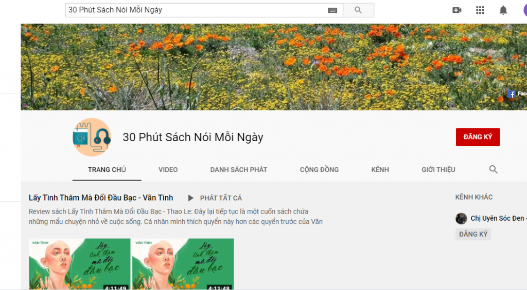 30 Phút Sách Nói Mỗi Ngày là sách nói youtube có lượt view và sub tăng rất nhanh trong năm 2020. Mỗi video nội dung của trang đều thu hút sự chú ý của người nghe. Kênh sách nói free này hướng đến 3 bộ sách chính là: sách tâm lý và kỹ năng sống, bộ lấy Lấy Tình Thâm Mà Đổi Đầu Bạc - Vãn Tình, Tử Huyết Tóc của tác giả Thục Linh.
