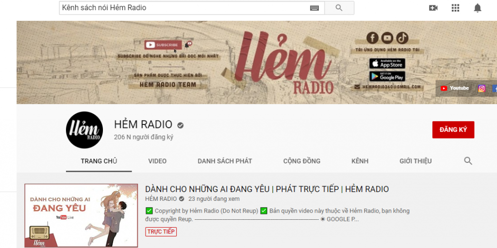 Nếu bạn là người yêu thích văn học, muốn tìm kiếm một kênh sách youtube chất lượng thì đừng vội bỏ qua cái tên Hẻm Radio nhé. Kênh Hẻm Radio xây dựng, và truyền tải các tác phẩm văn học thành những dạng audio sống động giúp người nghe dễ dàng cảm thụ, tiếp thu tốt hơn so với việc đọc hiểu thông thường. Điều khác biệt mà kênh sách nói youtube này đem đến là sau mỗi một tác phẩm họ đều sẽ có những phần phân tích, đánh giá, bình luận và giải thích từ vựng,...giúp người nghe có thể hiểu một cách toàn diện về các tác phẩm được đề cập đến trước đó. Chính nhờ những yếu tố trên mà kênh youtube đã thu hút được số lượng lớn người nghe với lượt view lên đến hàng triệu.