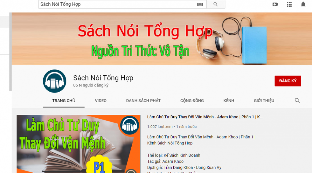 Sách Nói Tổng Hợp là kênh sách youtube có nội dung vô cùng phong phú và đa dạng. Kênh YouTube này đăng tải các video sách nói free về rất nhiều dòng sách hữu ích khác nhau. Đến với đây, bạn có thể thỏa sức tìm kiếm cho mình những nội dung phù hợp bằng các thao tác đơn giản và nhanh chóng.