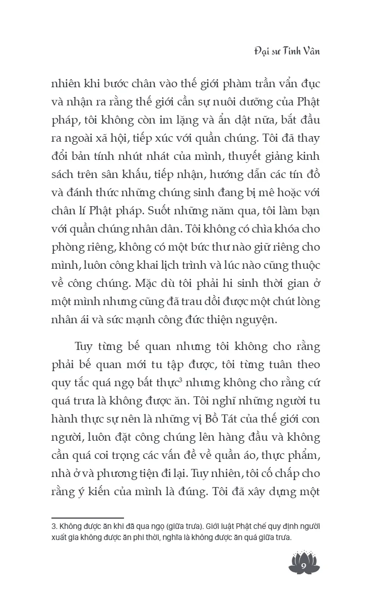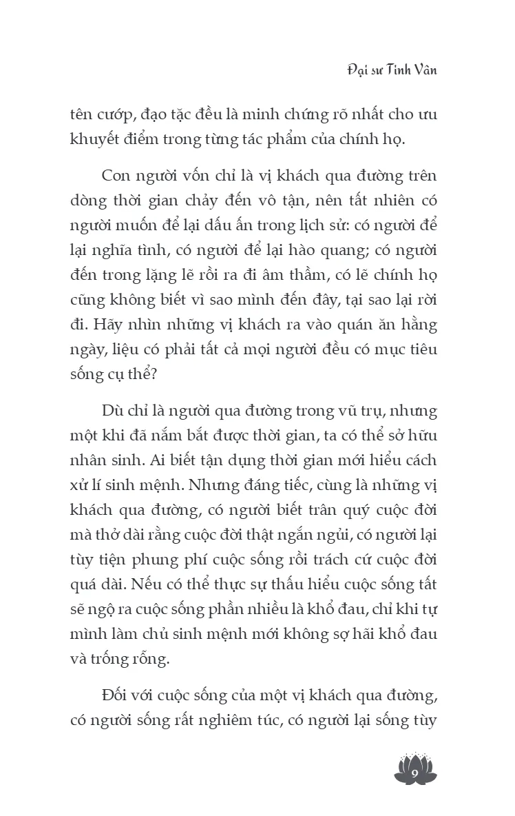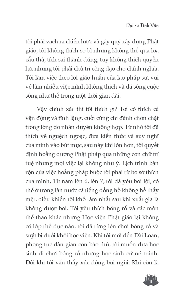 Đại sư Tinh Vân sinh năm 1927 tại Giang Đô, Giang Tô (Trung Quốc), 12 tuổi xuất gia tại chùa Đại Giác, sau đó tốt nghiệp Học viện Phật giáo Tiêu Sơn. Từ năm 1949, ngài sang Đài Loan, phụ trách tạp chí Nhân Sinh và giảng dạy Phật học, từng đảm nhiệm nhiều vai trò quan trọng trong các hội, viện Phật giáo.
