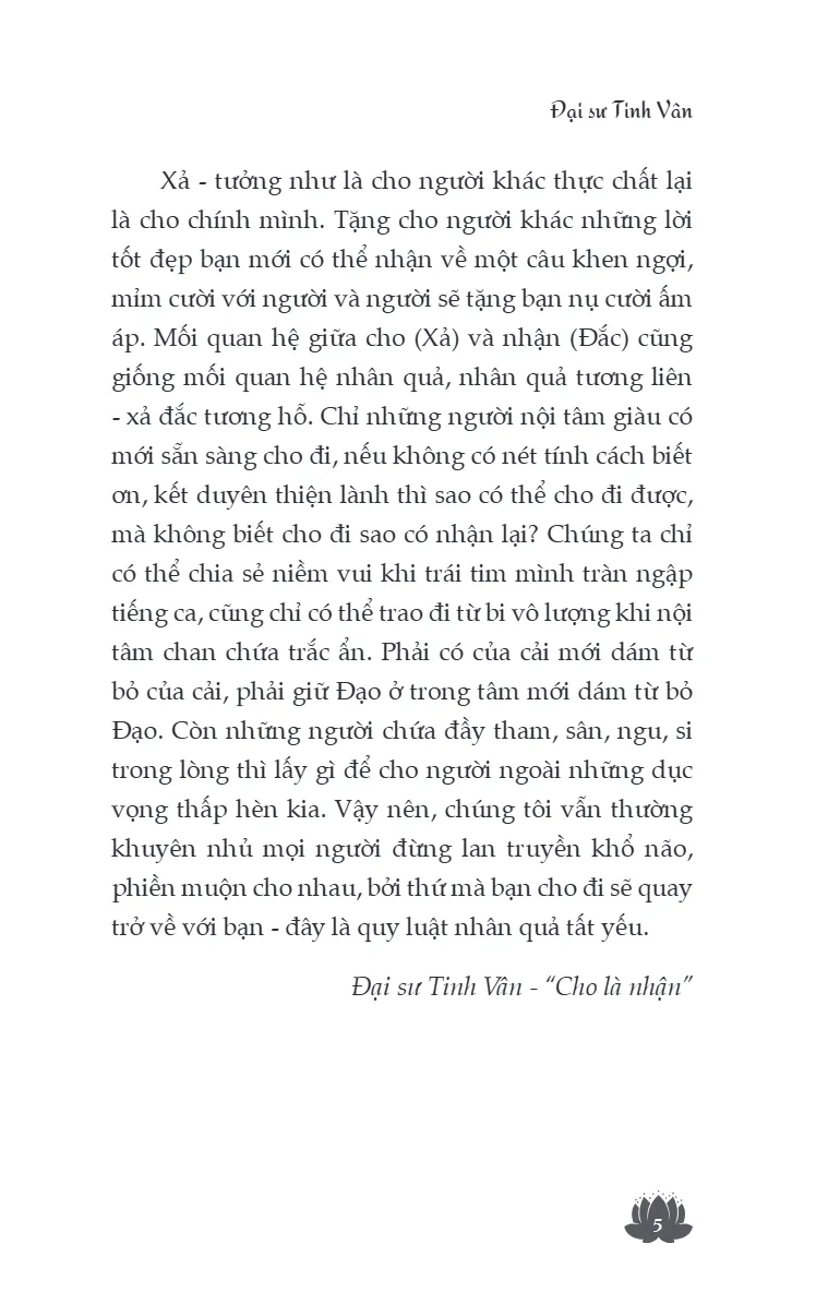 Đại sư để lại di sản đồ sộ về trước tác với các bộ sách như Tiểu sử Đức Phật Thích Ca, Các bài giảng của Đại sư Tinh Vân, Phật giáo nhân gian, Danh ngôn Phật giáo nhân gian… được dịch ra nhiều ngôn ngữ, cùng vô số hoạt động giao lưu, diễn đàn Phật giáo quốc tế mà ngài khởi xướng. Với lý tưởng “niềm vui và hòa hợp, tôn trọng và khoan dung, bình đẳng và hòa bình”, Đại sư Tinh Vân đã trở thành biểu tượng của Phật giáo nhân văn trong thời hiện đại. Ngài viên tịch ngày 05/02/2023, thọ 97 tuổi, để lại ảnh hưởng sâu rộng trong giới Phật giáo và cộng đồng tín đồ khắp năm châu.