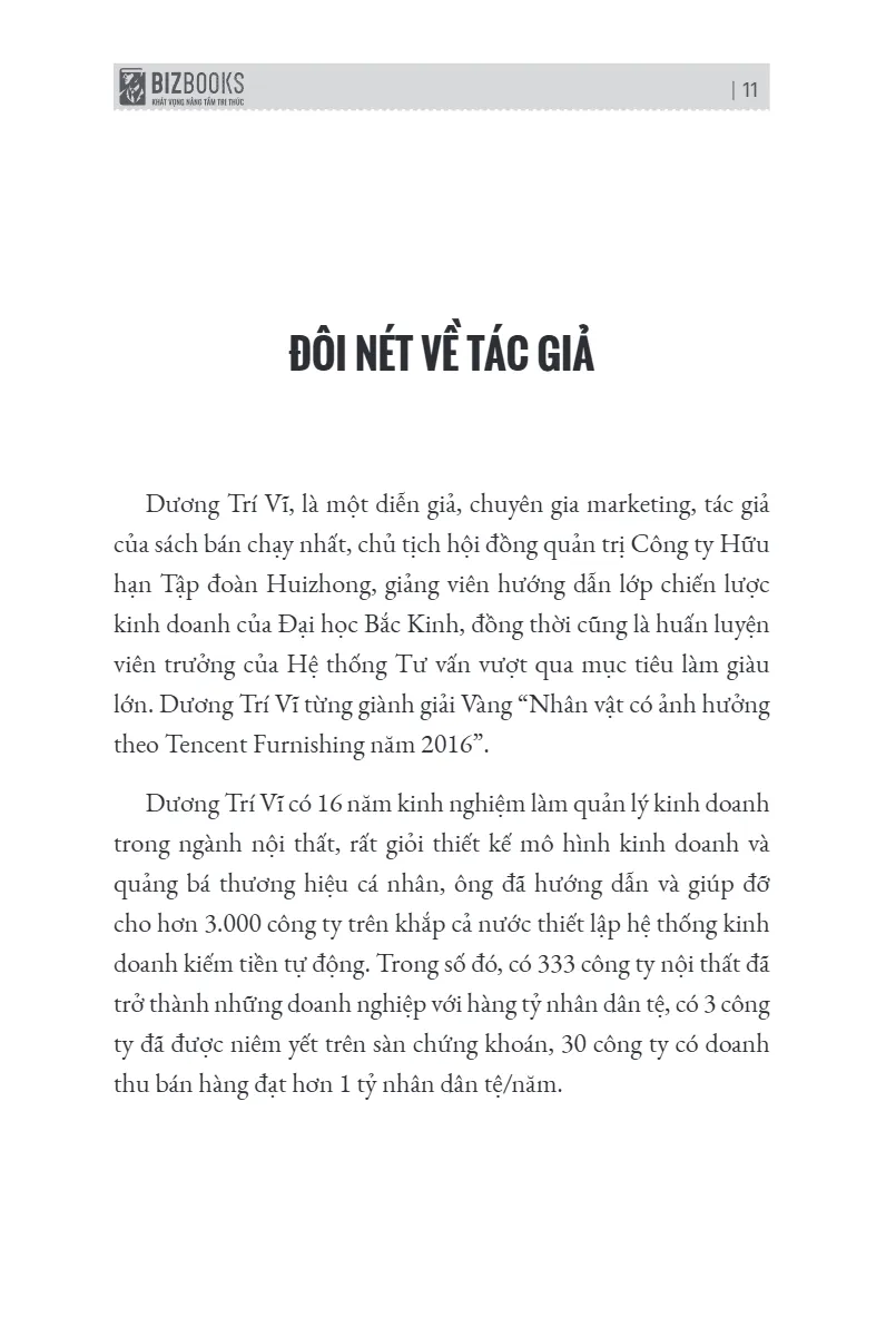 Với hơn 16 năm kinh nghiệm quản lý và vận hành trong ngành trang trí nội thất, Dương Trí Vỹ đặc biệt am hiểu thực tế thị trường, tâm lý khách hàng và cách tối ưu quy trình kinh doanh. Anh là giảng viên lớp Chiến lược kinh doanh của Đại học Bắc Kinh, nhiều năm trực tiếp đào tạo cho đội ngũ lãnh đạo và chủ doanh nghiệp trên khắp Trung Quốc.