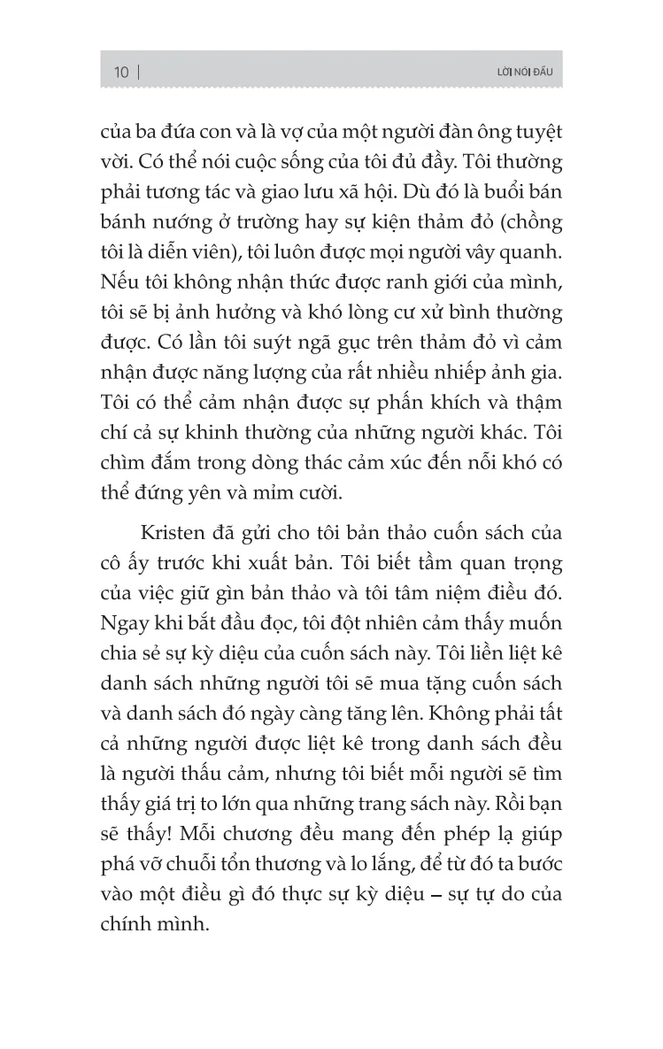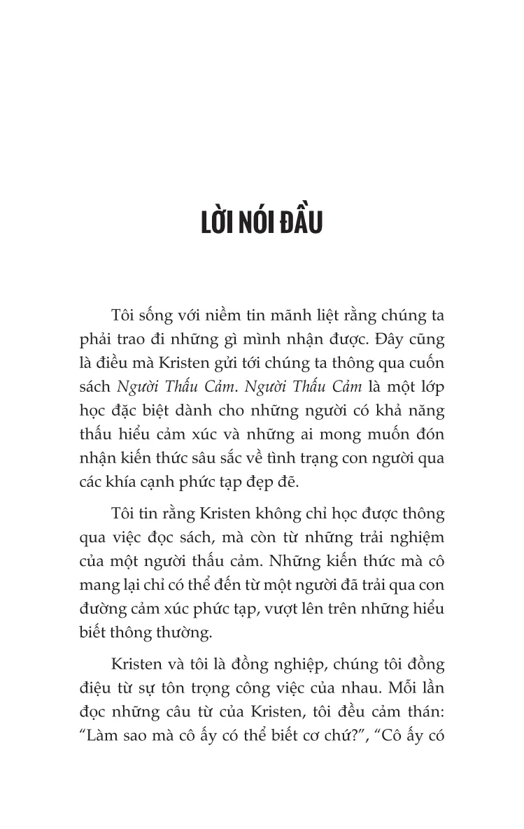 Trong những khoảng thời gian không đi sâu tìm hiểu về những người thấu cảm khác, Kristen lên kế hoạch cho chuyến du lịch tiếp theo của mình hoặc đọc sách trên võng giữa những tán cây. Kristen sống ở Georgia cùng chồng và hai con.