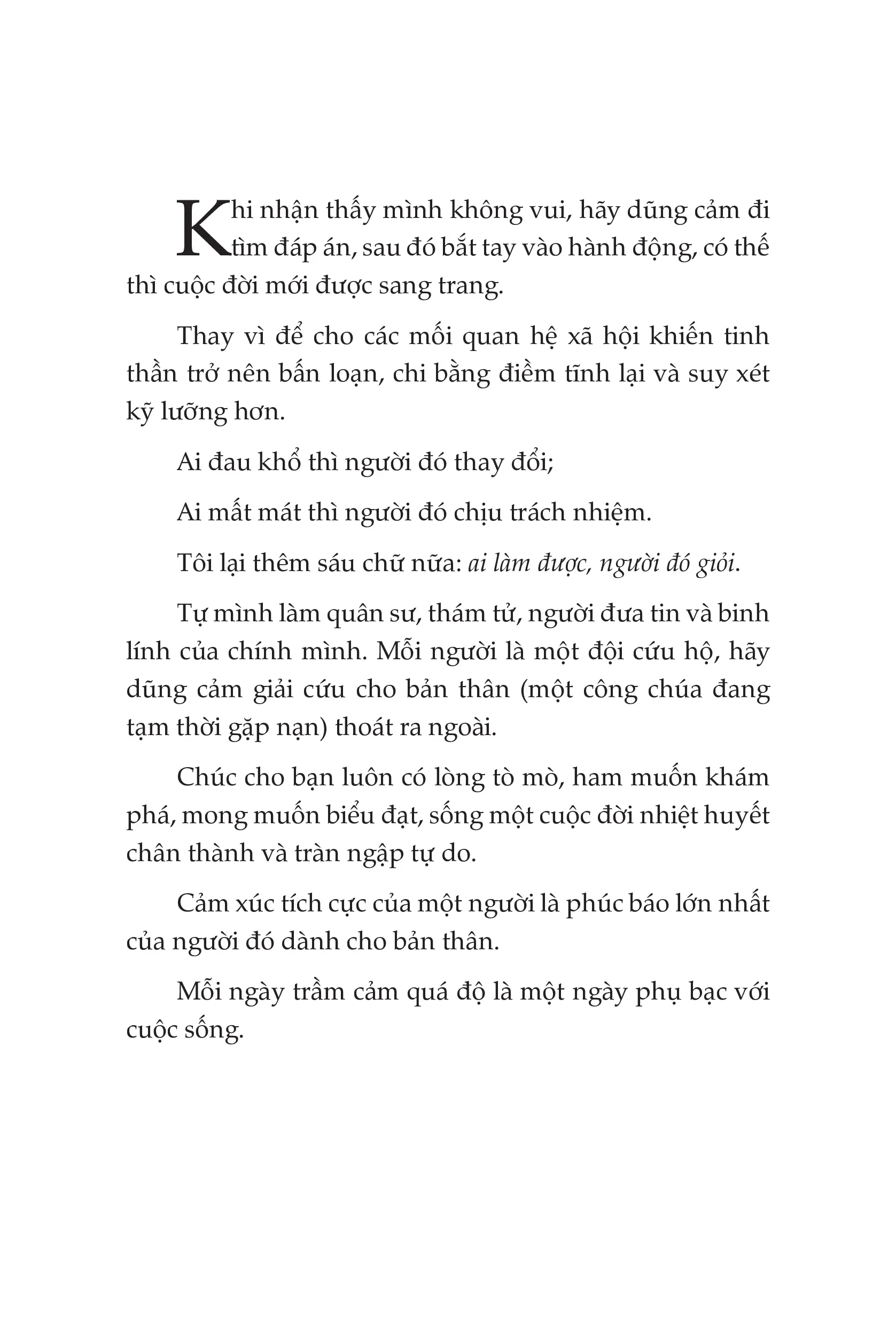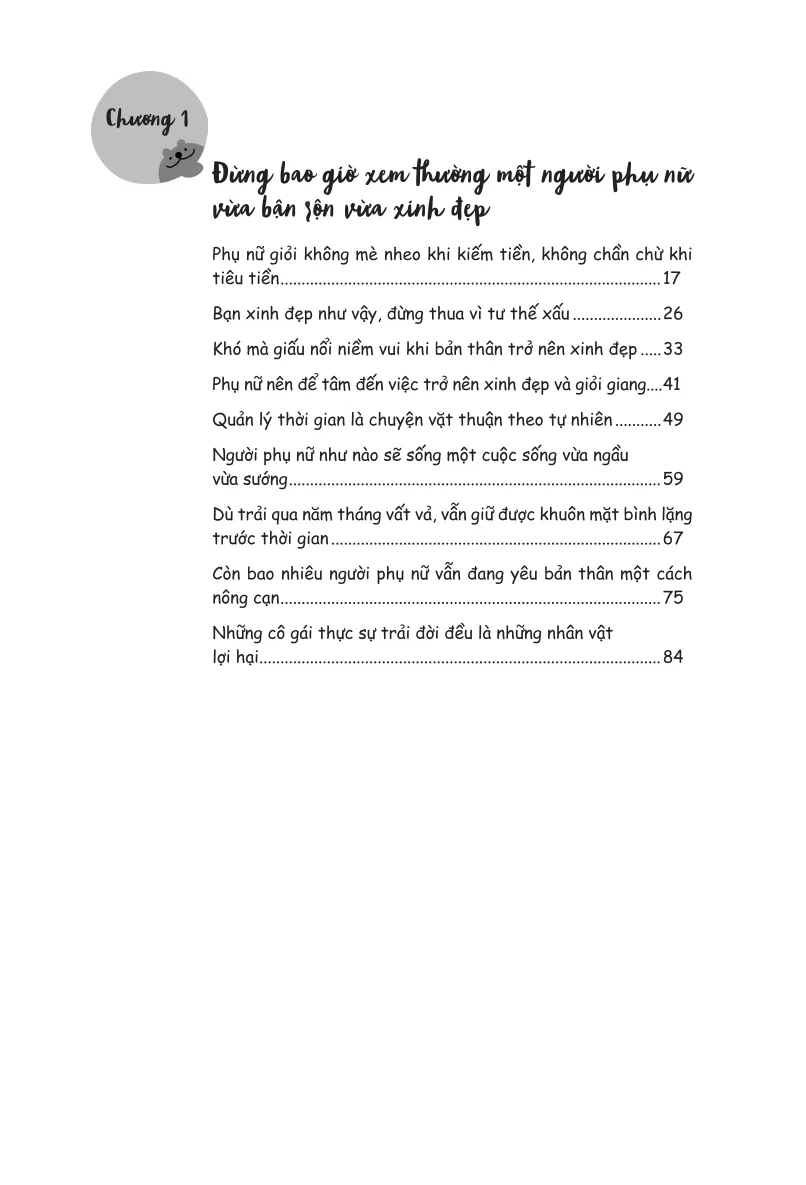 Một cô gái cung Bọ Cạp lý trí, viết cho những người thiếu quyết đoán, dễ bị tổn thương và mâu thuẫn, nhằm khơi dậy tính kỷ luật trong họ. Tác phẩm tiêu biểu của cô là Sống Kỷ Luật, Biết Kiềm Chế, Đời Mới Vừa Ngầu Vừa Sang và Năng lượng tái sinh: Hành trình biến mình thành viên ngọc tỏa sáng.