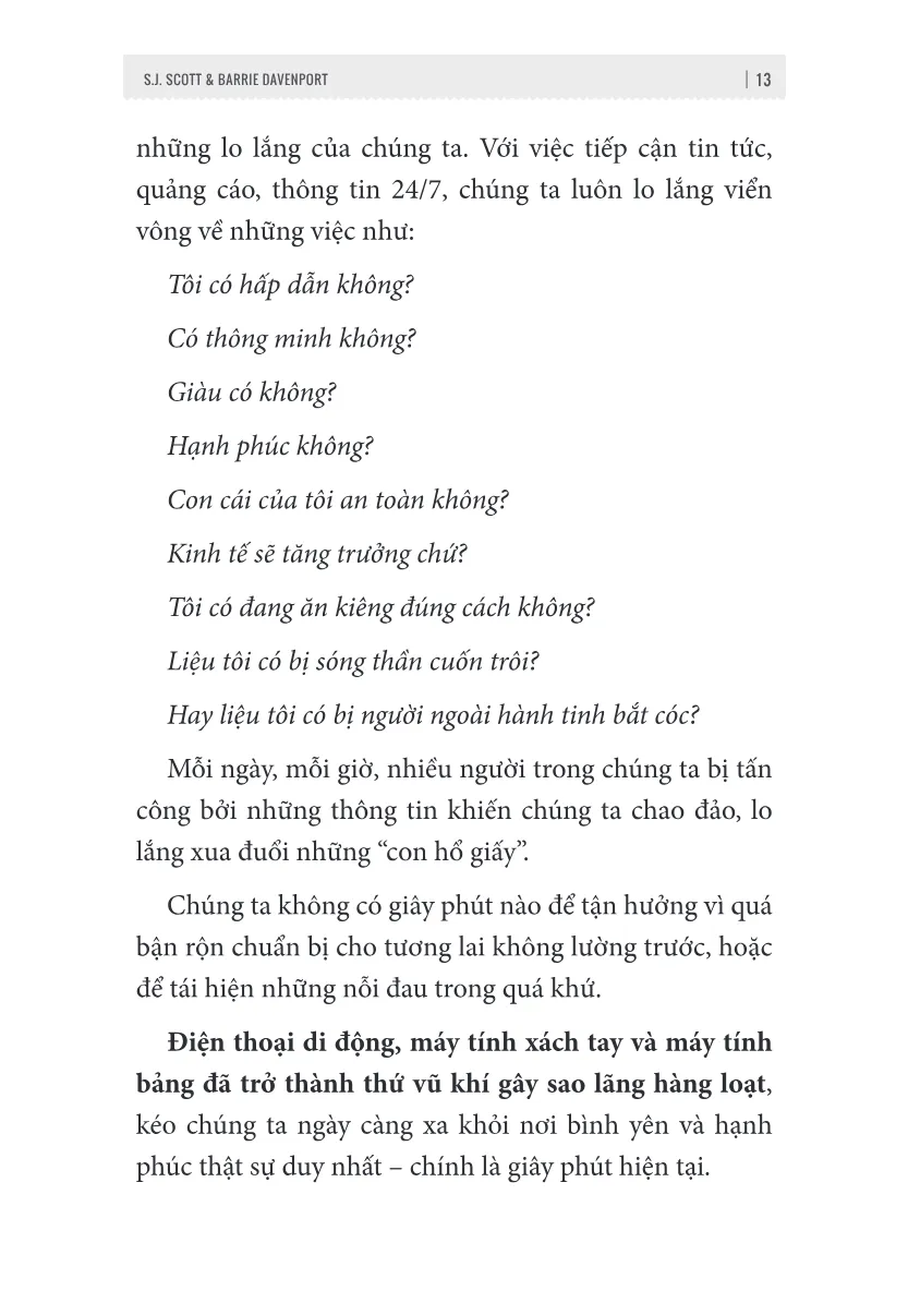 Trong các cuốn sách của mình, S.J. Scott xây dựng những kế hoạch hành động theo ngày, giúp người đọc “biết phải làm gì ngay hôm nay” thay vì chỉ đọc để thấy hay. Nội dung của ông trải rộng nhiều mảng thiết thực nhất: sức khỏe, thể dục, công việc và các mối quan hệ cá nhân. Điểm khác biệt ở Scott là tính thực hành cao: ông không sa vào những chiến lược được thổi phồng, nghe hấp dẫn nhưng hiếm khi hiệu quả ngoài đời. Thay vào đó, ông đưa ra các bước rõ ràng, dễ triển khai, có thể áp dụng ngay lập tức để tạo đà, giữ nhịp và duy trì tiến bộ.